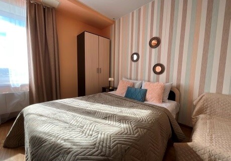 Уютные однокомнатные апартаменты. Двуспальная кровать и диван.
